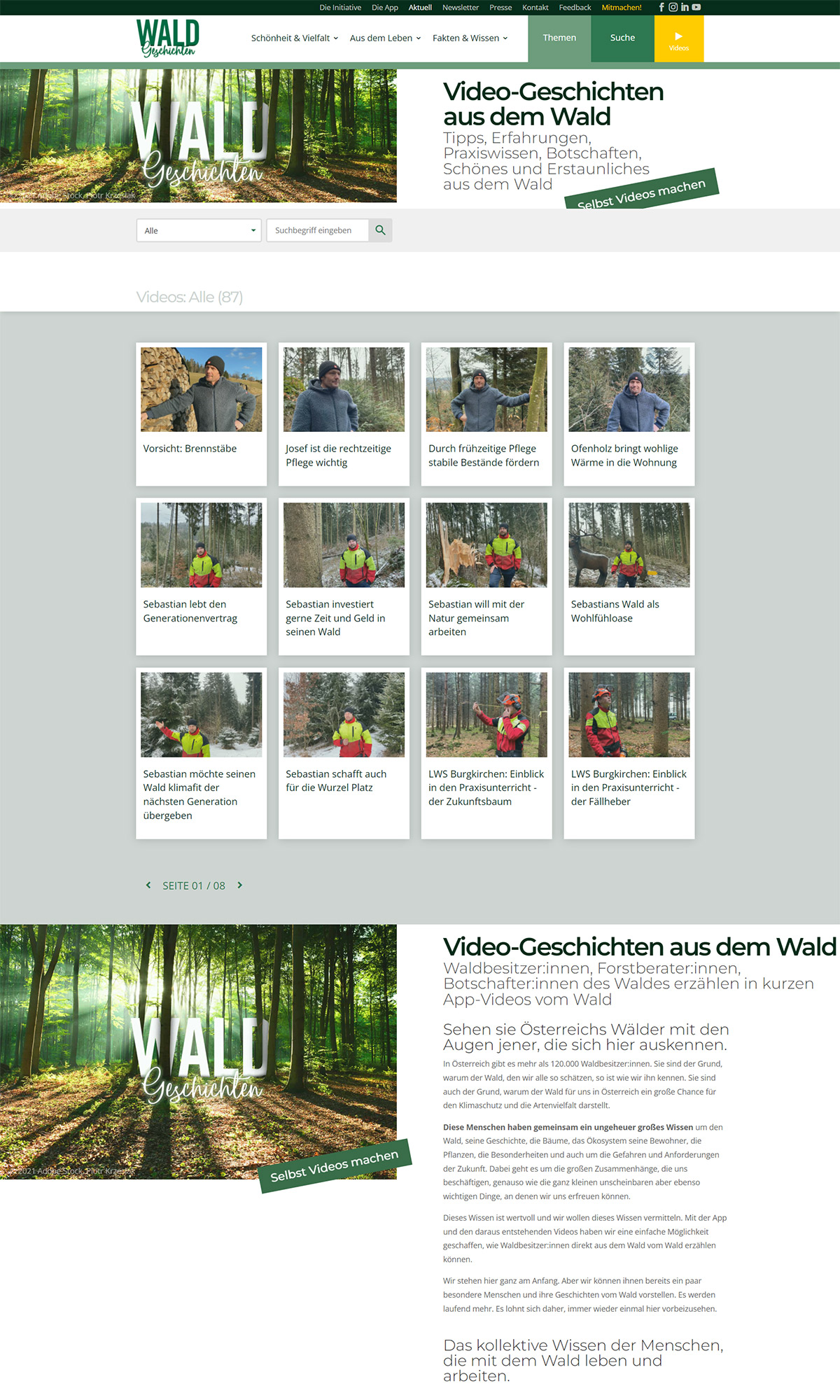 Neben dem zentralen Internetauftritt und den Repräsentationen in diversen sozialen Netzwerken stellt die Waldgeschichten APP ein weiteres Kernstück dieser Initiative dar. Sie erlaubt es Menschen des Waldes – von Waldbesitzer:innen bis hin zu Wissenschaftler:innen und Waldliebhaber:innen, sehr niederschwellig und authentisch von ihrer Sicht in Kurzvideos zu berichten. Die Videos haben eine große Bandbreite und reichen von „Das ist mein Wald“ bis hin zu sehr konkreten Tipps zur Waldpflege, Biodiversität und zu einem klimafitten Wald.